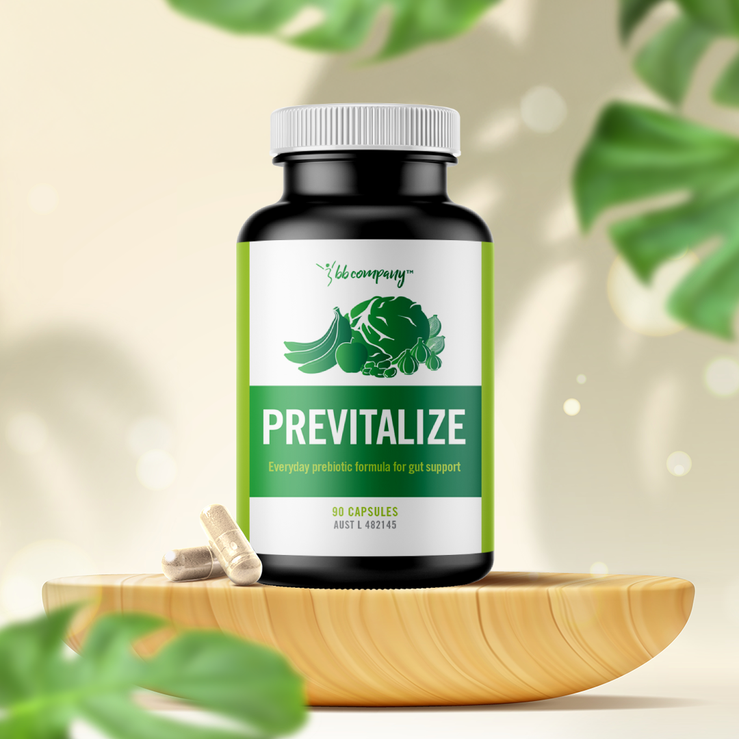 Previtalize is chock full of prebiotics that act as food for the probiotic strains, helping them multiply faster in the gut.
