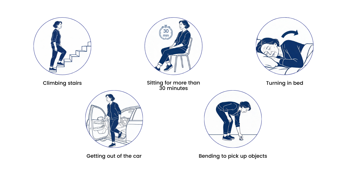- Sitting comfortably for long periods without pain