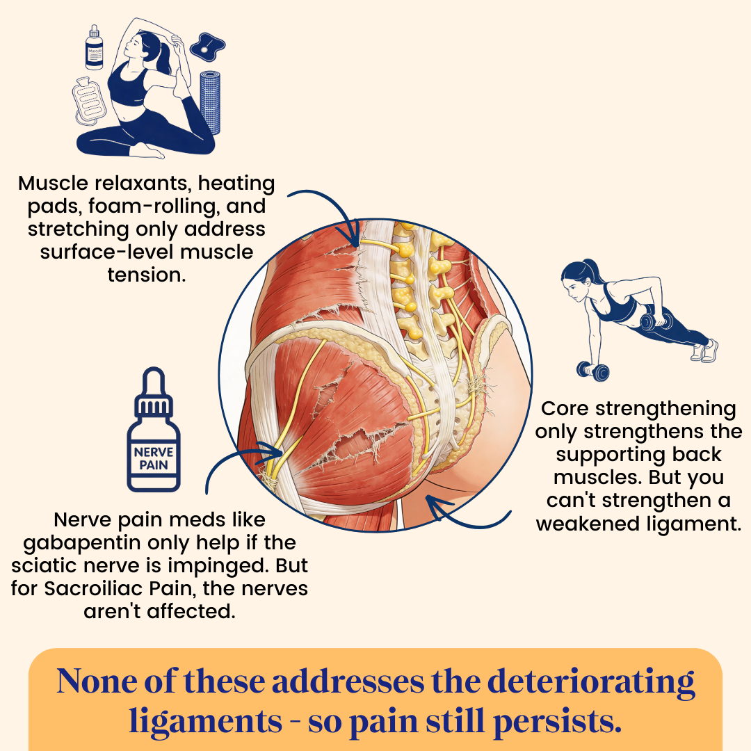 Why Muscle Relaxants, Heating Pads, Nerve Pain Meds, Stretching & Glute Strengthening Can’t Fix This