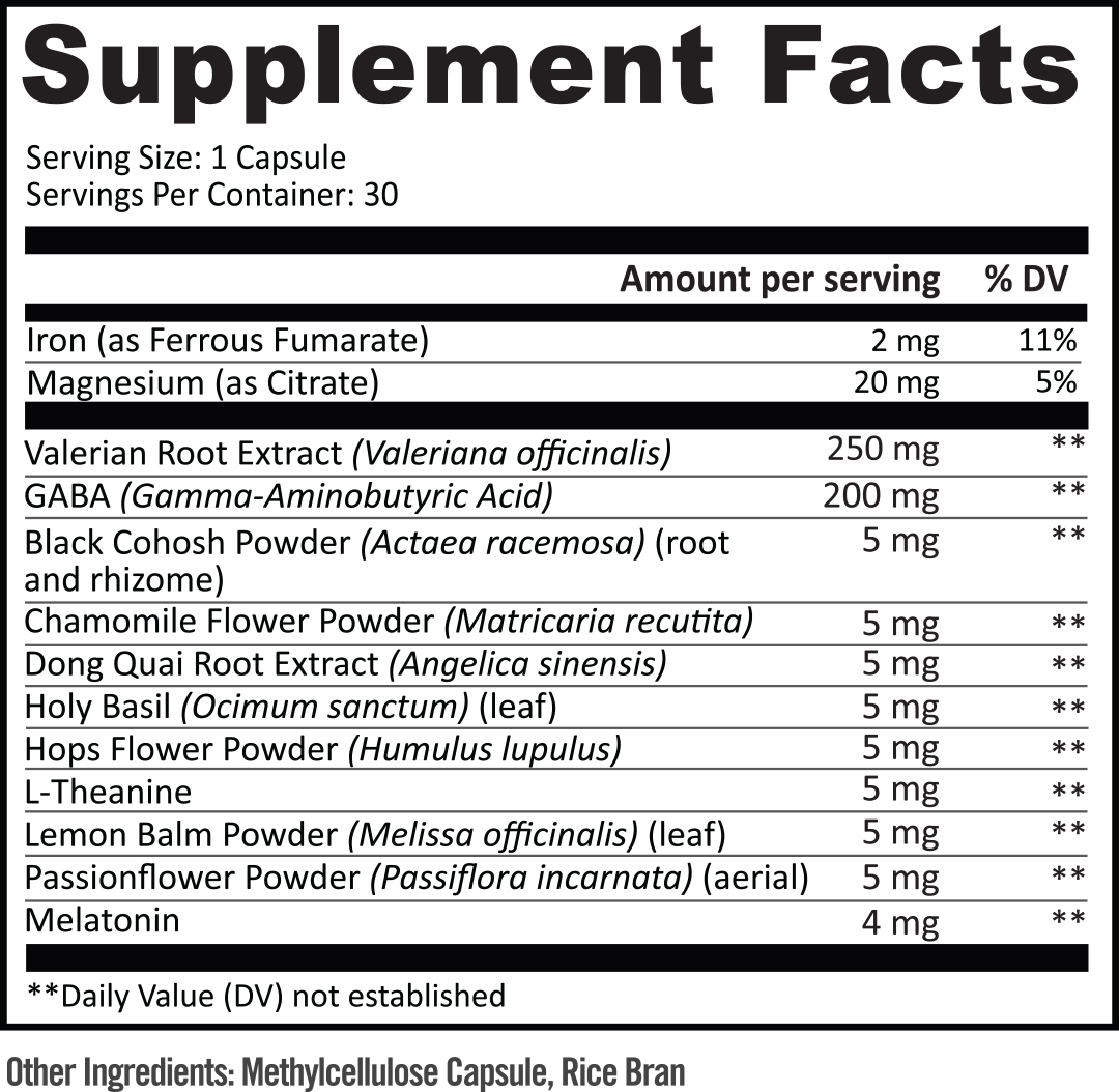 • Valerian Root (Herb that provide feelings of tranquility and deeper sleep)